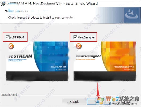 4、勾选scSTREAM,HeatDesigner,点next继续;