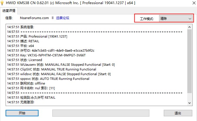 2、单击工作模式的下拉框--找到并单击 “数字激活”--单击左下角的 “开始”按钮;