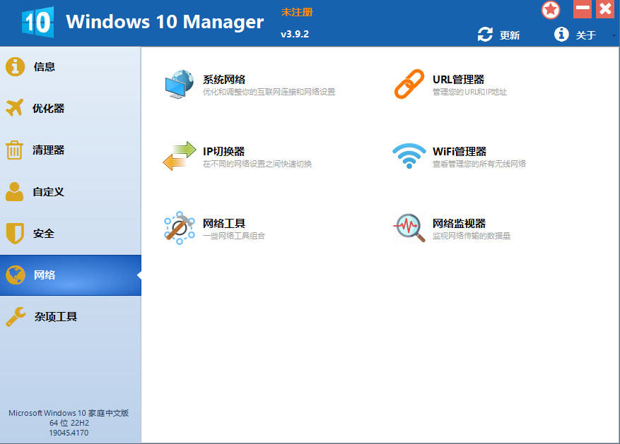 2、 优化和调整你的互联网连接和网络设置;调整微软Edge浏览器设置;IP切换器可以在不同的网络设置之间轻松切换;编辑hosts文件以加快系统浏览互联网的速度; Wi-Fi管理可以查看和管理所有的无线网络。