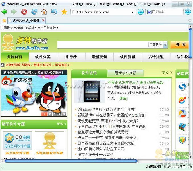 改进: 修复修改收藏夹后重启浏览器不能保存的bug(0110) 提升了浏览器的打开页面和响应速度 ,操作更流畅了 收藏夹里不再显示隐藏文件了 修复: 修复了使用最新的Flash测试版插件时,在flash页面切换输入法导致浏览器卡住的问题 修复了打开某些页面时,显示...
