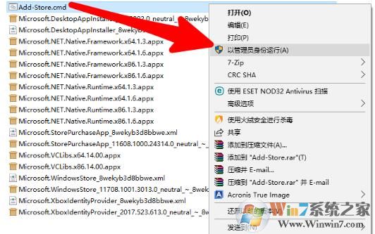 2、打开amd64文件夹,右键点击Add-Store.cmd 以管理员身份运行即可。