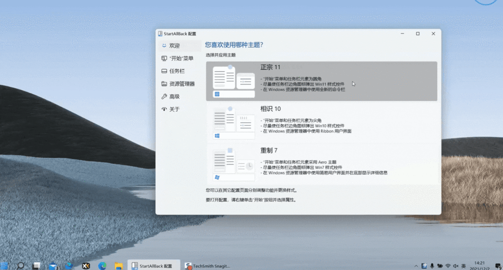 1.享受 Windows 7、Windows 10 和第三方任务栏和开始菜单样式