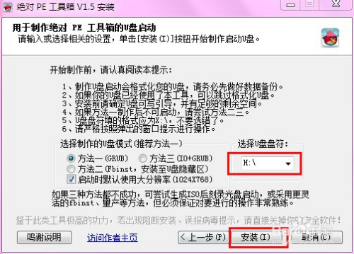 7、弹出写入Grub引导窗口,选择U盘,,后面三个选项都勾上,点击安装