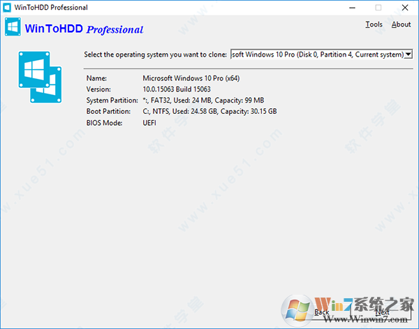 2、在下拉列表中选择要克隆的Windows操作系统,您将在其下看到详细的系统信息,如果确定,请单击“下一步”;