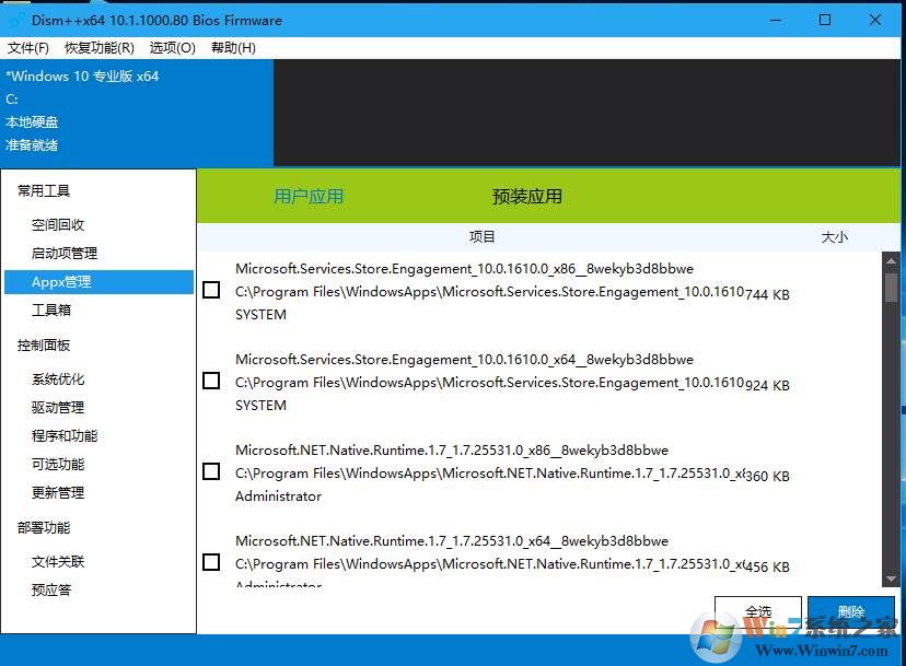 自带APP应用清理:把系统自带的应用彻底清理支持Win8/win10