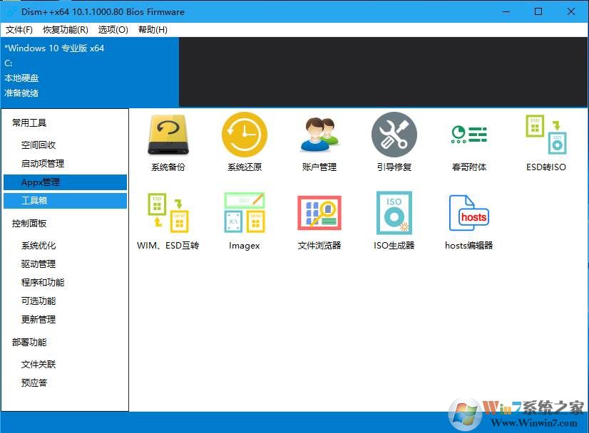 Dism++可以说是dism的gui版,但是并不依赖Dism,直接基于更底层的CBS,所以Dism++比微软自带的Dism拥有更好的兼容性的更加轻巧的体积;