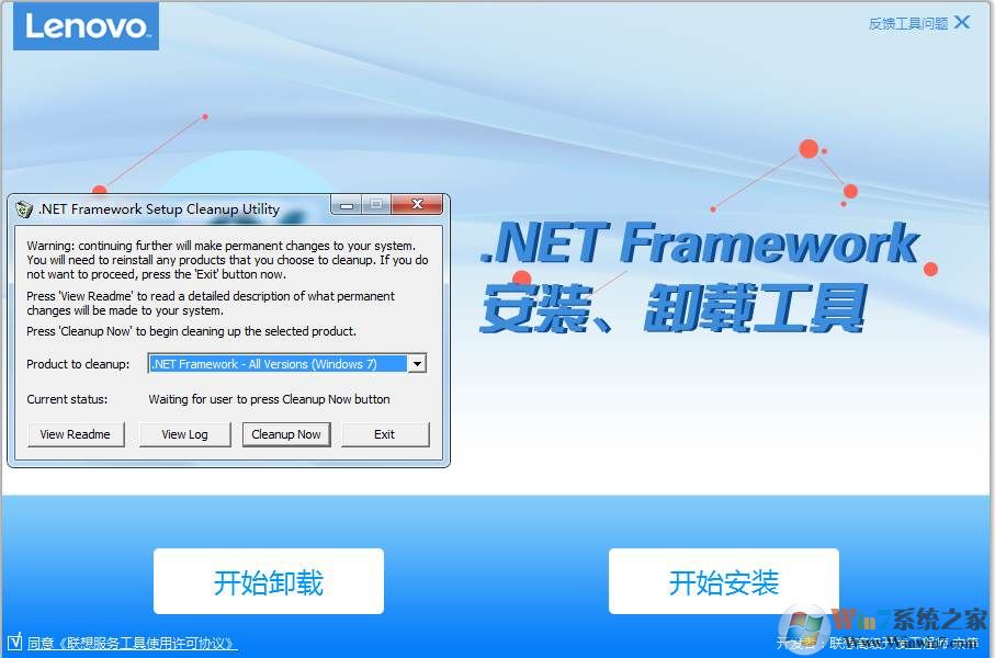 如果遇到电脑上.net Framework无法卸载的话,可以使用该工具进行卸载。如下图,点击开始卸载,然后选择你电脑上的.net版本,点击cleanup now 就可以开始卸载了。