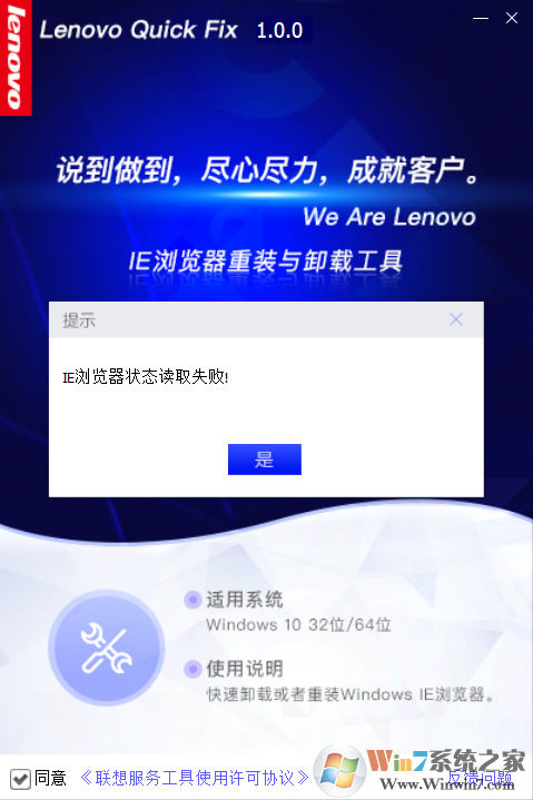 2、如果当前IE浏览器处于启用状态,界面按钮会切换到卸载浏览器状态,如果IE浏览器状态读取失败,则会提示失败信息。如图4: