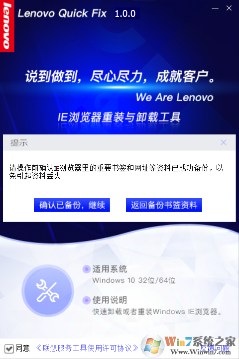5、点击“确认已备份,继续”按钮卸载浏览器,操作成功将弹出提示。如图7: