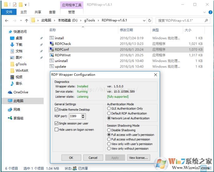 3、其中RDPConf为配置工具。可以设置远程桌面连接端口等;