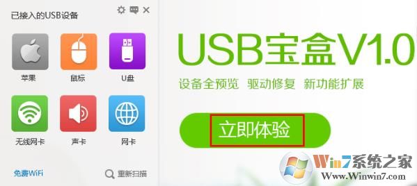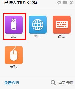 第一步:接入U盘,打开USB宝盒,点击“U盘”图标