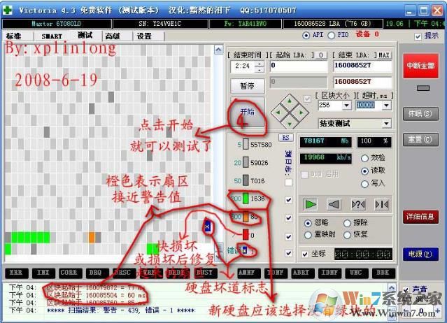 victoria号称WINDOWS版本的MHDD,虽然4.3版本早在07年就已发布,