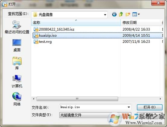 2.弹出选择镜像文件的对话框,选择一个镜像文件。