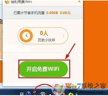 安装成功后,在电脑右下角有个wifi标志,点击--然后点击开启免费wifi的按钮