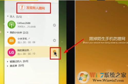 5、设置好电脑后,打开手机wifi搜索,找到自己设置的名字,然后输入密码连接,电脑会提示连接成功,有小伙伴加入,也可以管理加入的人员拉黑,踢出等,防止蹭网