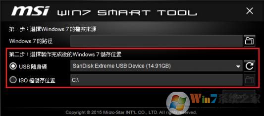 2、执行 Win7 Smart Tool 软件 选择含有 Windows 7 安装档案的文件夹或者光驱