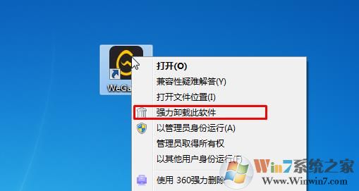 右键点击桌面上要卸载的软件图标选择“强力卸载此软件”