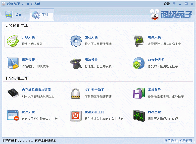 超级兔子系统检测可以诊断一台电脑系统的CPU、显卡、硬盘的速度,由此检测电脑的稳定性及速度,还有磁盘修复及键盘检测功能。超级兔子进程管理器具有网络、进程、窗口查看方式,同时超级兔子网站提供大多数进程的详细信息,是国内最大的进程库。超级兔子安全助手可能隐藏磁盘、加密文件,超级兔子系统备份是国内唯一能完整保存Windows XP/2003/Vista注册表的软件,彻底解决系统上的问题。