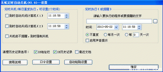 无忧定时关机是一款小巧实用的免费工具软件 ,集成了定时关机、便签、定时执行任务、定时提醒、屏幕截图、锁定屏幕、清理历史记录、自动粘贴等实用功能。定时关机功能支持待机和休眠状态。