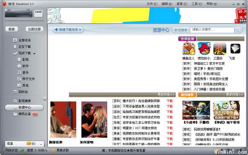 网际快车(FlashGet)是互联网上最流行,使用人数最多的一款下载软件。采用多服务器超线程技术、全面支持多种协议,具有优秀的文件管理功能。快车是绿色软件,无广告、完全免费。快车中的某些功能,可能需要您注册之后才能使用.我们称这些功能为车库。拥有车库帐号,可享受资源发布、