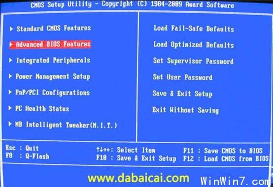 电脑启动时按“del”或“F8”键进入BIOS设置具体设置请参阅 大白菜U盘装系统设置U盘启动教程