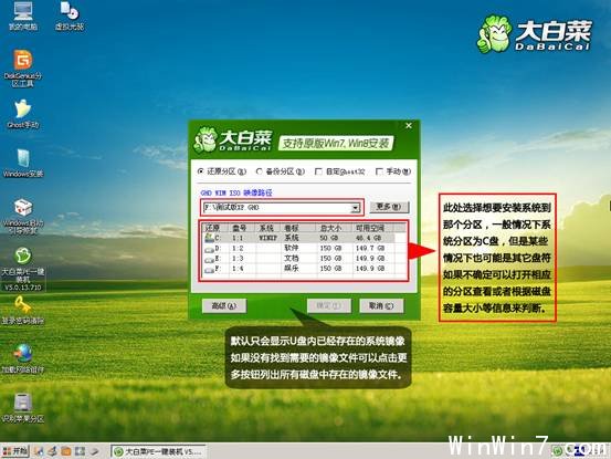 新手必看:系统文件一般有二种格式:ISO格式和GHO格式。ISO格式又分为原版系统和GHOST封装系统二种。只要用解压软件WinRAR解压后有大于600M(WIN7一般2G)以上的GHO文件的,是GHOST封装系统,PE里的大白菜智能装机PE版软件可以直接支持还原安装。如果解压后没有大于600M以上的GHO文件的是原版ISO格式系统,要用安装原版XP和WIN7的方法安装,详细步骤请看相关教程。下文的教程主要针对GHOST封装版的系统,即gho系统或者iso内含系统gho的情况。