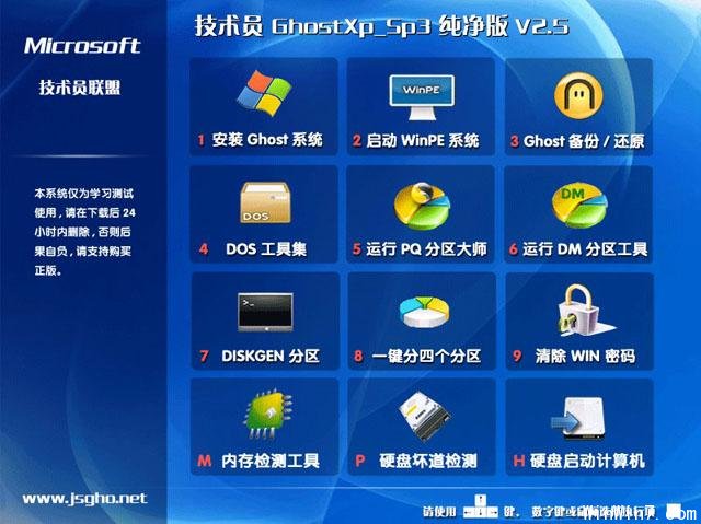 技术员联盟Ghost Xp Sp3纯净版v2.5安装方法:
