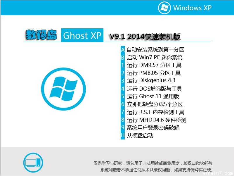 数码岛Ghost XP SP3 V9.1 纯净快速装机版