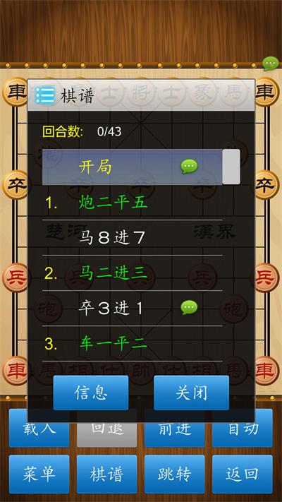 5、支持打谱功能,可载入棋谱文件,浏览棋谱,自动播放棋谱。